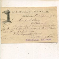 Brevkort Aktiebolaget Eskilstuna Separator