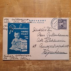 Vykort med reklam för Gyllen Delikatess