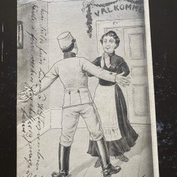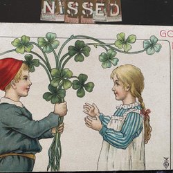 Lisa Lindberg Pojke lämnar fyrklöver till flicka Vacker stämpel Hillerstorp 1902
