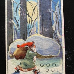Finskt signerat vykort Tomte med säck