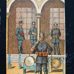 Tecknade militärer från Axvall regementets lägervakt signerat