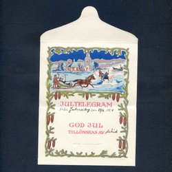 Slädfärd Småformatigt utvikbart Jultelegram signerat J SWEDIN 1924