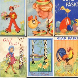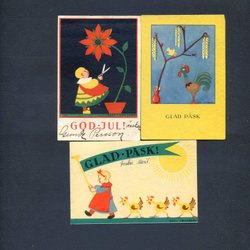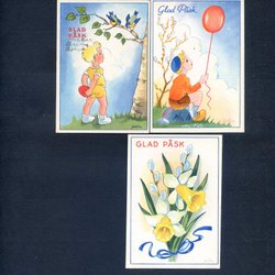 3 småformatiga Påskkort signerade W i fisksymbol ( Wahlforss ) 1940-50tal