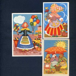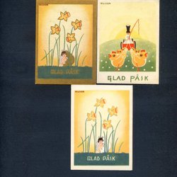 3 småformatiga Påskkort signerade BOEL CRONBERG 1940tal blandad kvalitet