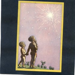 2 barn i öknen ser julens stjärna Osignerat KÄTHE NORBORG 1940tal?