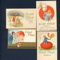 4 småformatiga Påskkort signerade GS 1940tal
