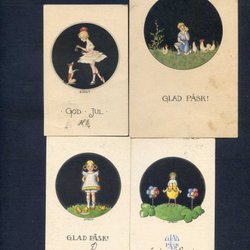 4 Helgkort motiv i rundel varav 3 småformatiga signerade BIRGIT 1920tal