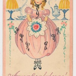 Adina Sand Anna Gratuleras Fin flicka m bukett frramför kaffebord Dat 1926 KV7 *