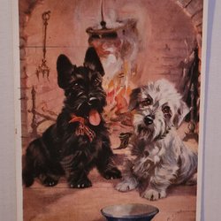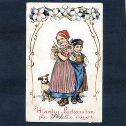 Barn och Hund skickar Hjärtlig Lyckönskan tecknat kort sign JÖ ( ÖDBERG )1910tal
