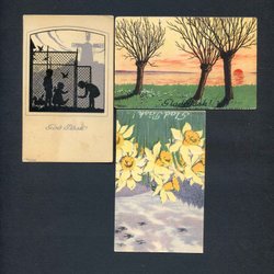 3 småformatiga Påskkort signerade UDDEN 1920tal