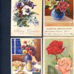 4 tecknade Gratulationskort med blommor signerade HERBERT 1940(50)tal