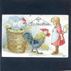 En trevlig Påsk Flicka med höns Tecknat kort sänt från USA 1917 sign GRETA GERG?