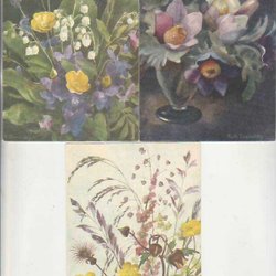 3 småformatiga Påskkort signerade JUSTINA 1940tal?