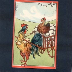En rolig Påsk tupp drar äggvagn Tecknat kort sign HG (GH?) 1910-20tal