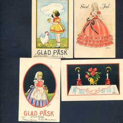 4 småformatiga Helgkort signerade MARGIT CARLBRING 1920-30tal