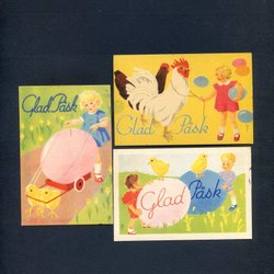 3 småformatiga Påskkort signerade ÖDBERG 1940tal