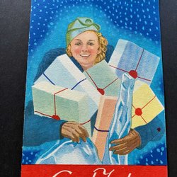 Litet vykort Dam med äggbricka signerat Helfrid Selldin Art Deco