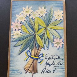 Vitsippor signerat Louise Adelborg . stämplat Bonäshamn Pob 1 1946