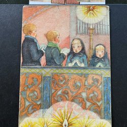 Litet vykort i kyrkan signerat M.K Broman