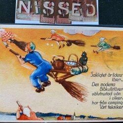 Litet vykort Påskkärringar i luften signerat Ernst Lindelöf