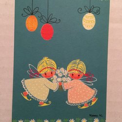 Gulligt påskkort med änglar - sign Karen K
