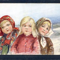 3 småflickor Mycket charmigt tecknat kort signerat E SVAN sänt 1905