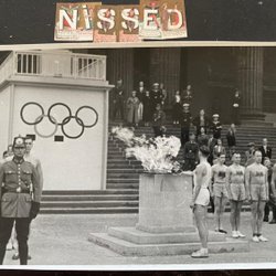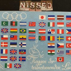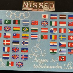 Vykort från OS 1936 med alla deltagare flaggor bla Nazi flaggan