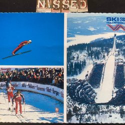Lahti Skidstadion med 3 hoppbackar 2kort sommar samt vinterbild
