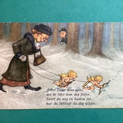 Jace. Julkort. Tomtar drar släden.