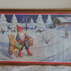 Jenny Nyström inramad tryck av tomte och gris, 1900-tal
