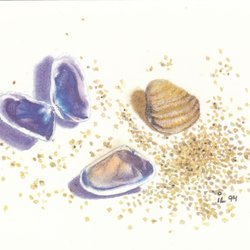 Snäckor I, Akvarell av Irene Larsson, Orust. Bästa nyskick!