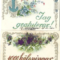 11. 3 präglade kort med sammetsdekorationer 2 m hela baksidor