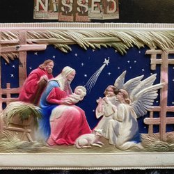 3D vykort Jesus och maria med jesusbarnet och änglar