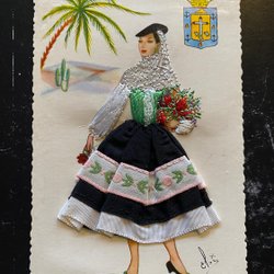 Klassiskt broderat vykort från spanien 1954