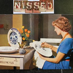 Flicka målar porslin på Royal Delftware factory