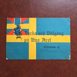 Sveriges flagga Oscar II samt noter till Sverige Heraldiskt kort saknar baksida!