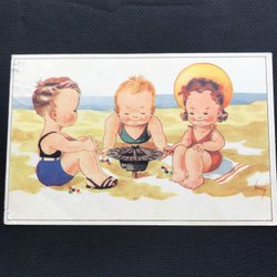 Barn som leker på stranden stämplat 1946