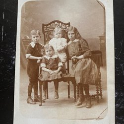 Äkta fotografivykort 4 barn på stolar Någonstans i Sverige