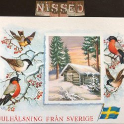LC Lars Carlsson dubbelvikt Julkort Fåglar och stuga