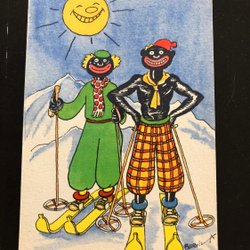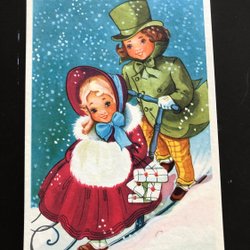 Anne Ch Sjöberg Nyårskort Pojke m skridsksegel Svenska flaggan i topp Dat 1905*