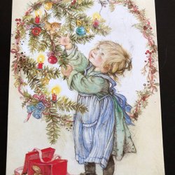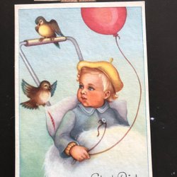 Litet vykort LC Lars Carlsson Pojke med ballong