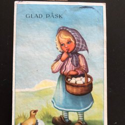 Litet vykort LC Lars Carlsson flicka med äggkorg