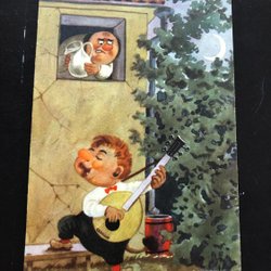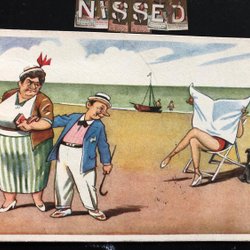 Skämtkort herre tittar på solande dam signerat