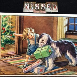 Curt Nyström pojke och hund med paket