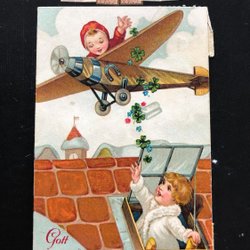 Litet vykort pojke i flygplan