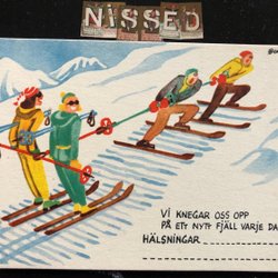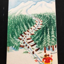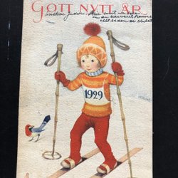Årtalskort 1929 skidåkare signerat Artelius