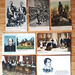 7 gamla kort föreställande kungar m fl