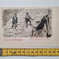 Äldre vykort Gruss von der Mädelegabel. Auf der Schneelawine am Wändle.