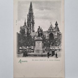 Äldre vykort Anvers. La place Verte et la statue Rubens.