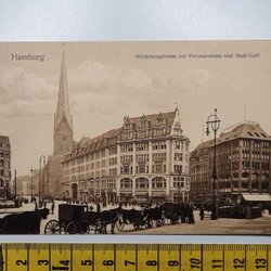Äldre vykort, Hamburg Mõnkebergstrasse mit Versmannhaus und Stadt-Café